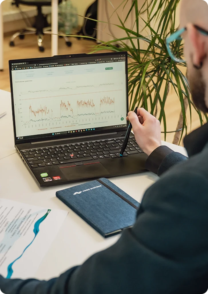 Autorska polska platforma, która monitoruje zużycie w czasie rzeczywistym (odczyty co 15 minut), wysyła alerty i generuje raporty. Dzięki temu wiesz, gdzie uciekają koszty i możesz reagować natychmiast.